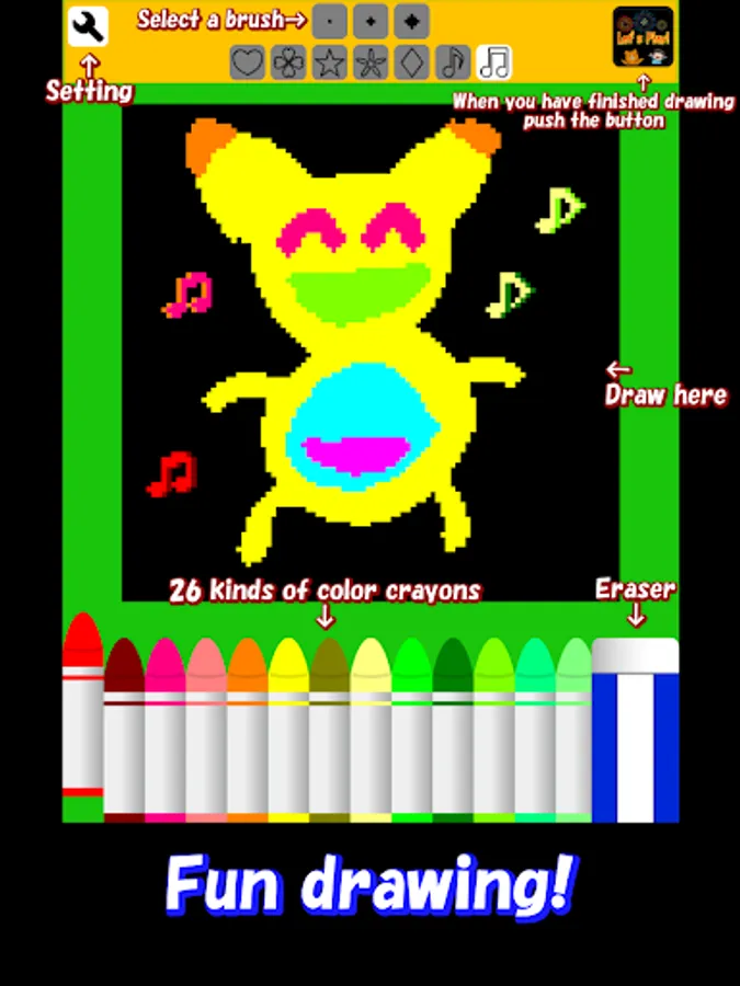 -Please press the "Let's play" button in the upper right-hand corner When you have finished Drawing.