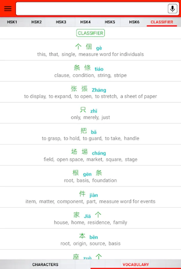 English - Chinese and Chinese - English Dictionary with more than 500,000 high quality word entries , HSK 1 - 6 vocabulary ,TOCFL vocabulary and ALL each 9000+ Chinese Hanzi characters database.