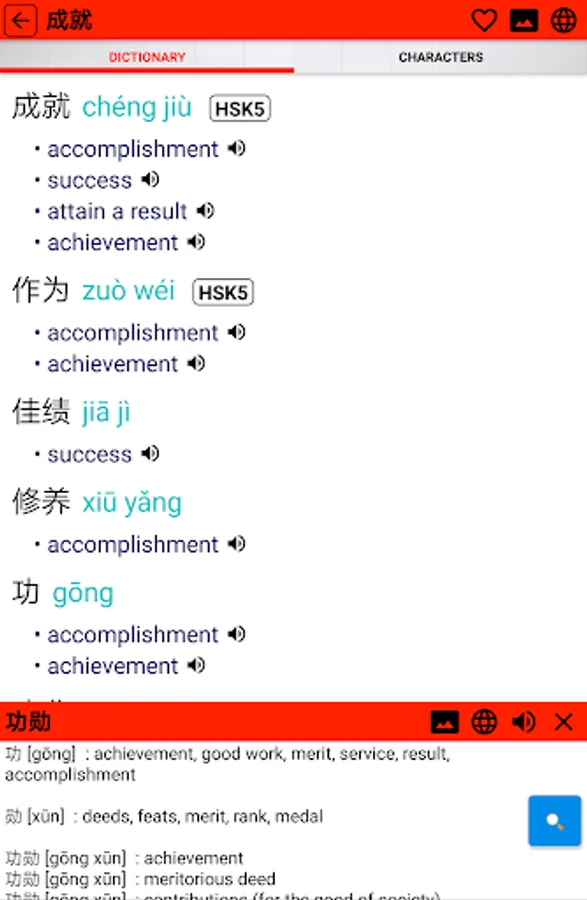 • Audio Pronunciation: instantly hear native-speaker audio for both Chinese and English word.