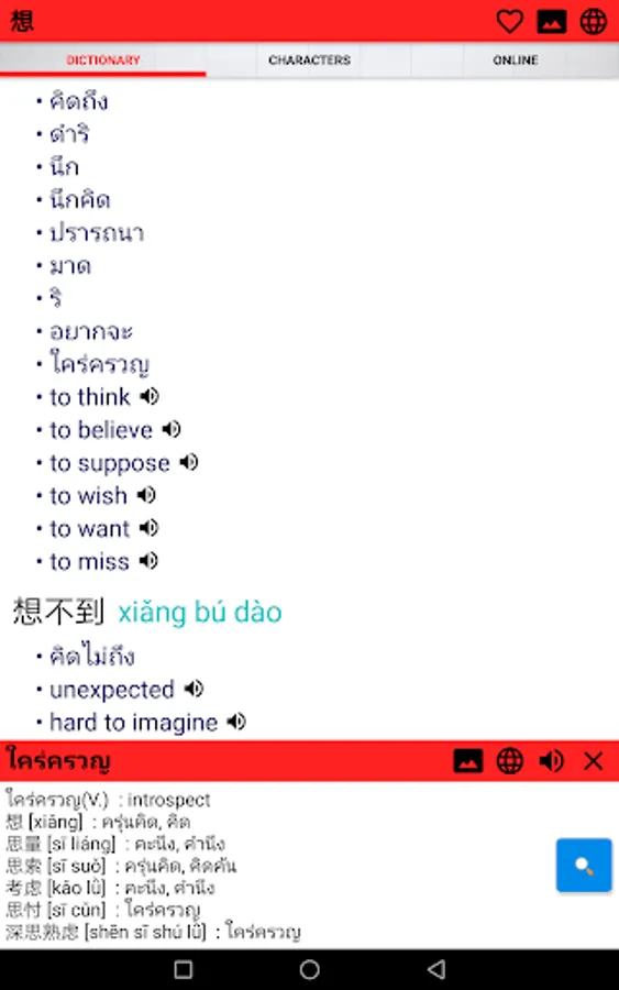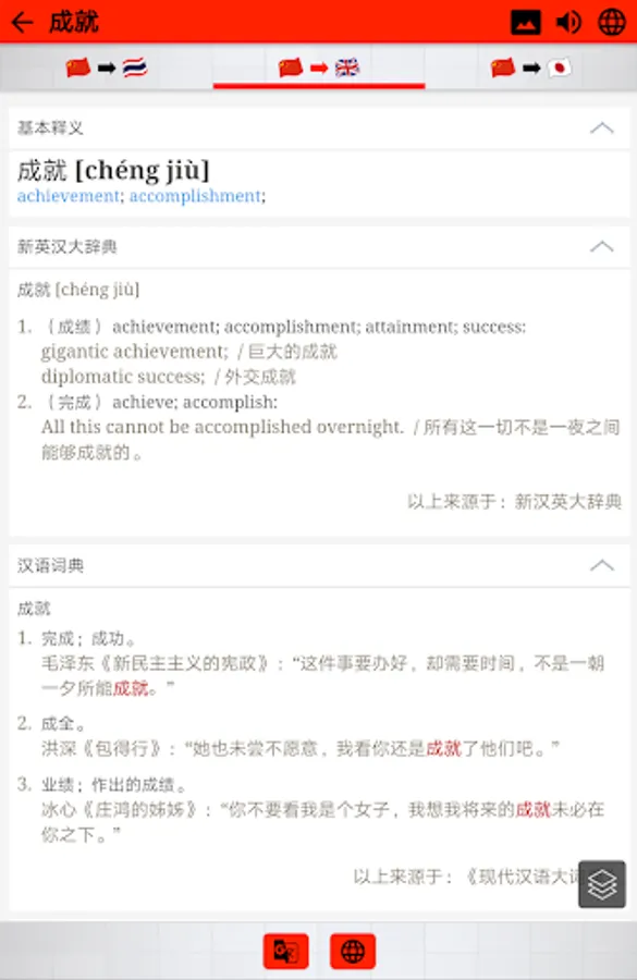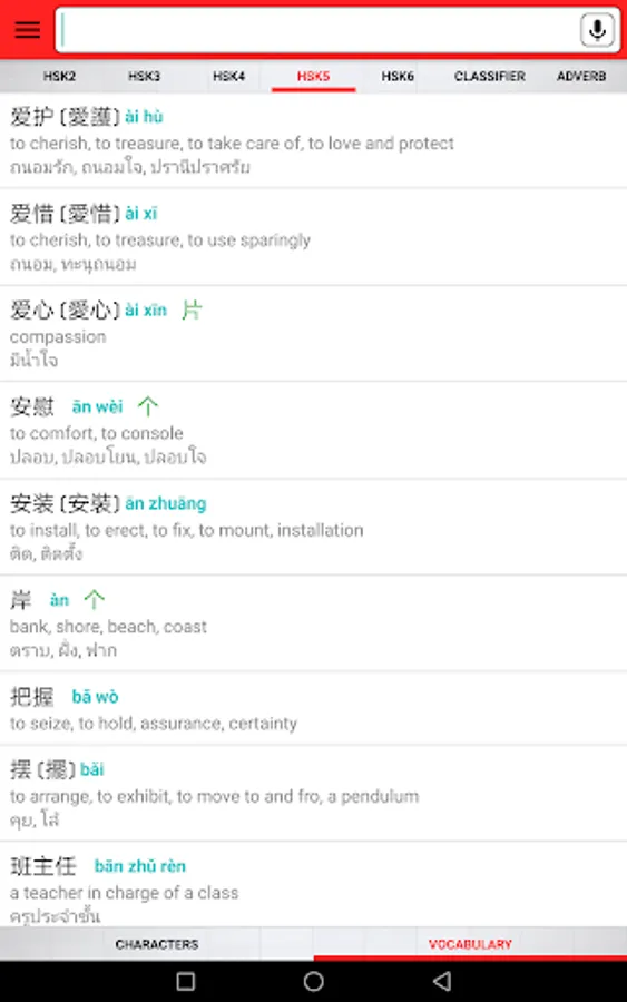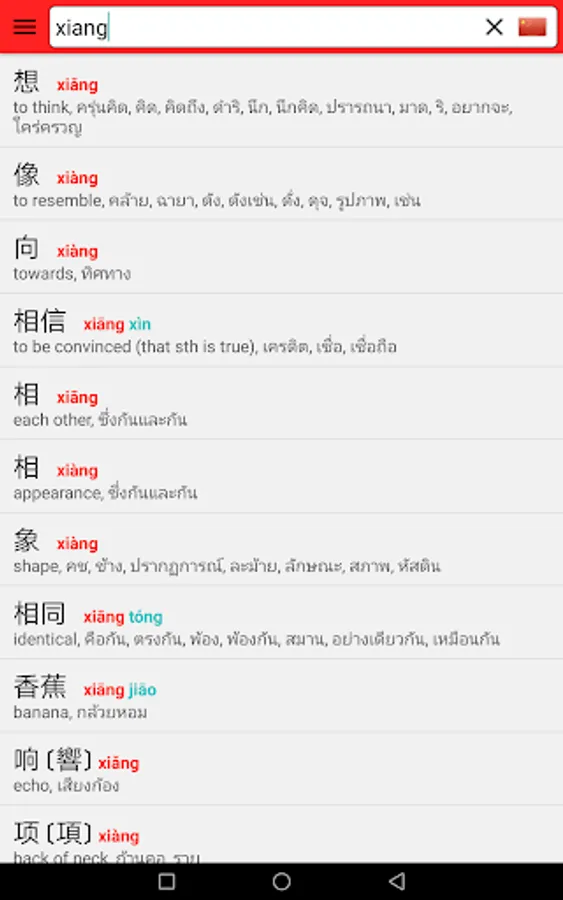 Thai - English - Chinese Dictionary with more than 700,000 high quality word entries , HSK 1 - 6 vocabulary and ALL each 9000+ Chinese Hanzi characters database.