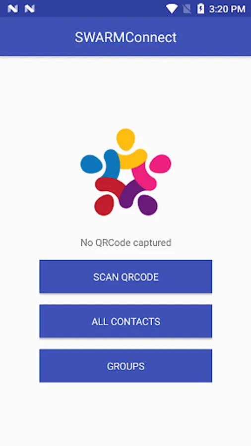 SWARMConnect application after installed just open and click on Scan QR Code will open scanner scan any QR Code which is having V-Card information, once successfully scanned will get V-card information and navigate to add contact action to save information into your local contacts