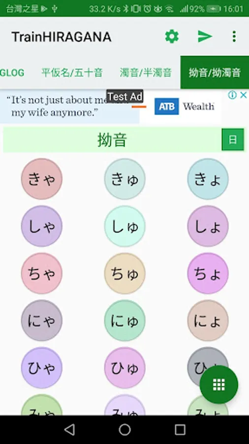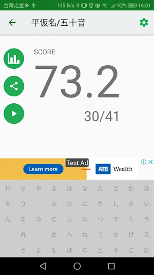 Handwriting Recognition is implemented on the Practice Screen and Pronunciation Game to judge the characters you have written.