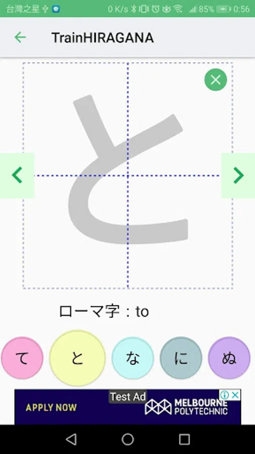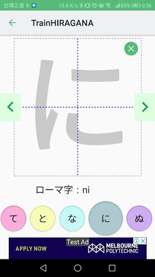 TrainHIRAGANA is a training application to learn Japanese character Hiragana.