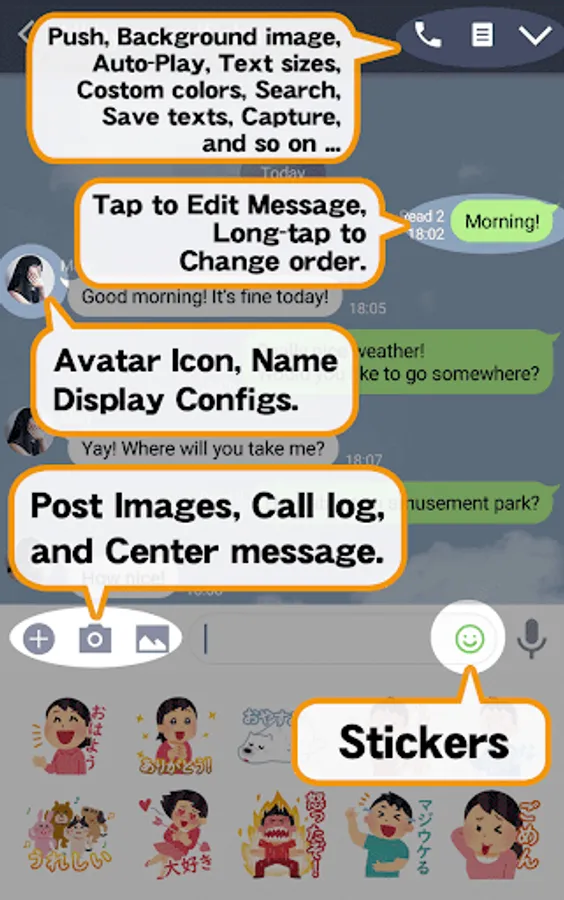 - You can freely edit the content of the message, date, time, and read number. And Stickers.