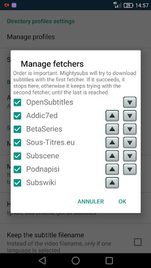 - 7 subtitles fetchers : OpenSubtitles, Addic7ed, BetaSeries, Sous-titres.eu, Subscene.com, Podnapisi.net and Subswiki. Select and sort the ones you want to use (more to come). Tusubtitulo.com support has been removed due to a request from its administrator.