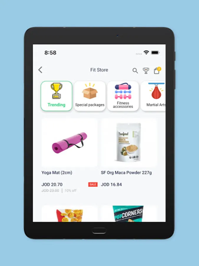 Fit store with thousands of items from healthy snacks to home workout accessories, super foods, supplements, martial arts and special packages. All delivered to your doorstep within 24 hours.