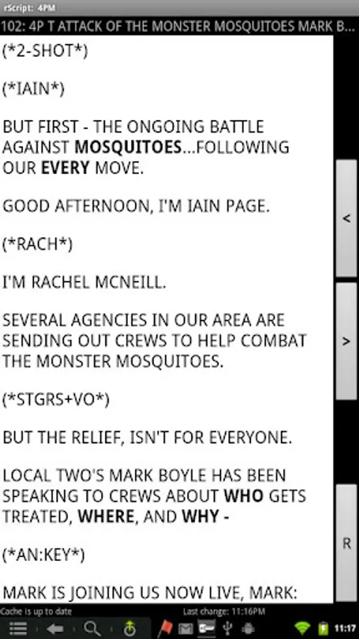 rScript is the fastest most reliable way to get REAL-TIME SYNCHRONIZED scripts from your news-room's iNEWS system onto any Android device. Because rScript maintains a complete copy of your show locally on your hand-held device, it allows you to step from page to page at lightning speed. No waiting for slow connections, and more importantly, there is no chance for you to get burned on-air due to your network connection dropping out. Once the initial copy of your show is downloaded, a background process begins that keeps all scripts updated in real-time. Need fast access to a particular page? You can jump right to a story from a rundown (queue) view. Need to cache multiple shows for quick back-to-back switching? rScript has you covered.