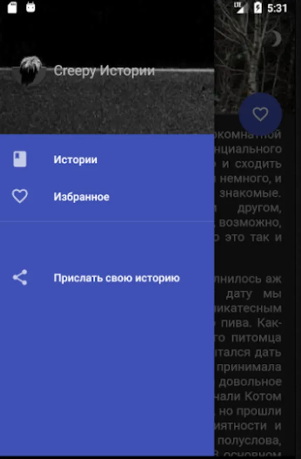 "Creepy Stories" - a terrible history of real and not very life. In this in this constantly updated collection you can find the most terrible and mysterious stories for any taste. All the stories were sent in by our readers, or are found in the vast network.