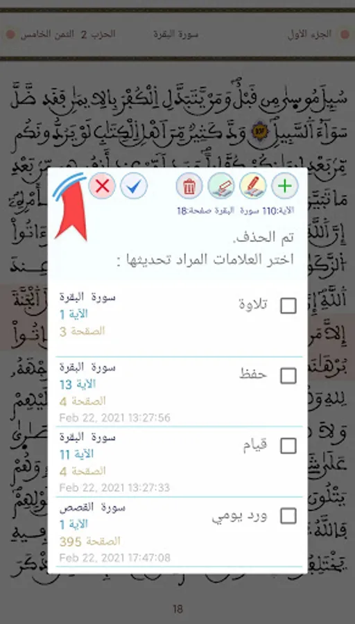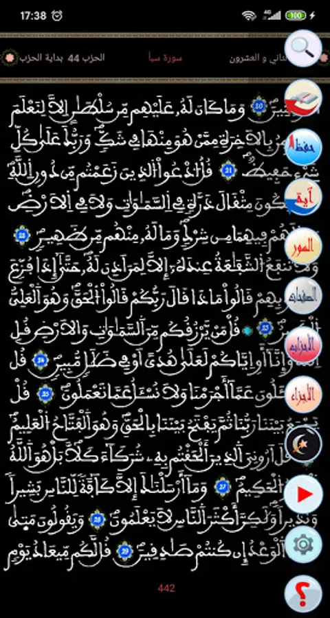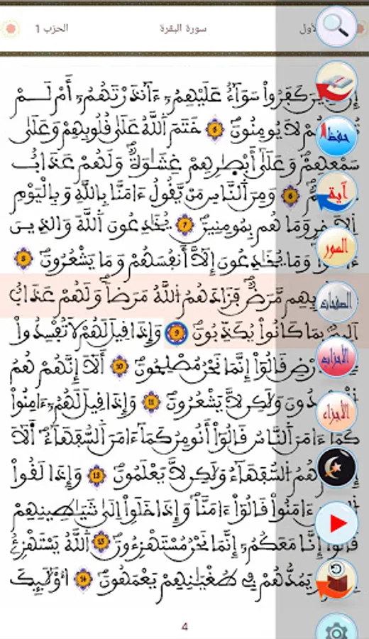 - The possibility of repeating the audio recitation of the verses in order to establish memorization.