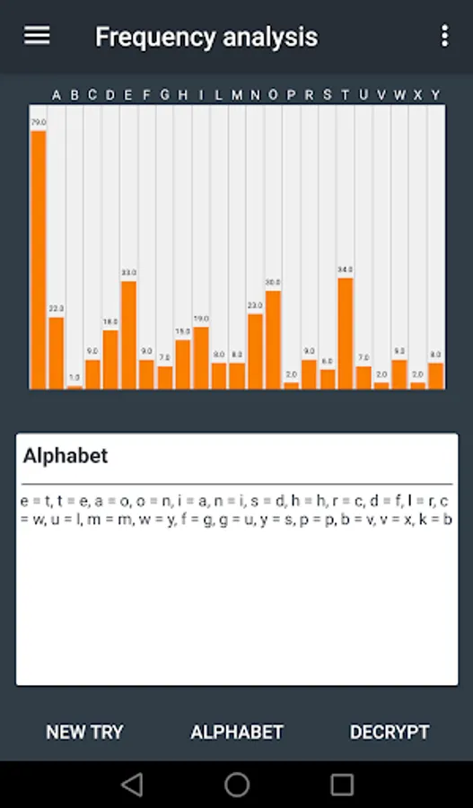 A frequency analysis tool for an encrypted text is also available. You can know exactly the number of occurrences of each letter in the encrypted text in a few clicks. Even better, the application can perform a frequency analysis and replace each letter of the encrypted message by the most likely letter!
