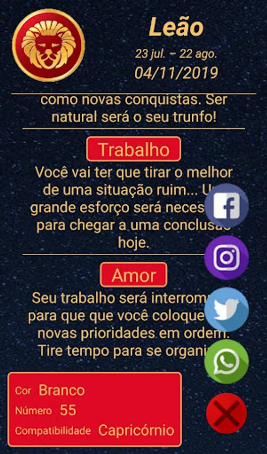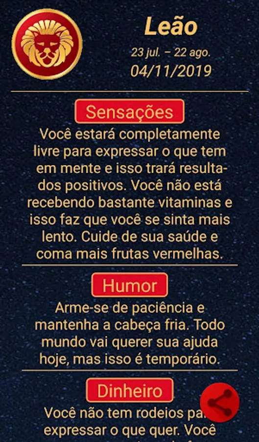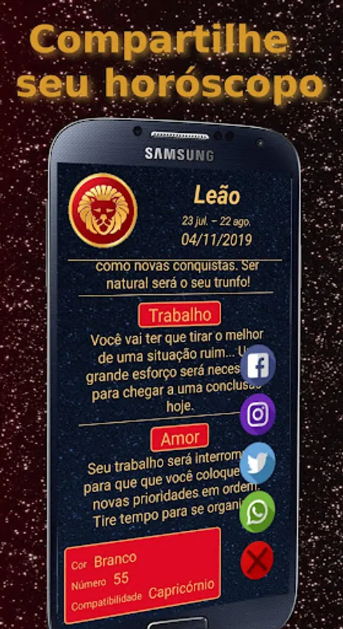 • Share the horoscope on social networks: Facebook, WhatsApp and others.