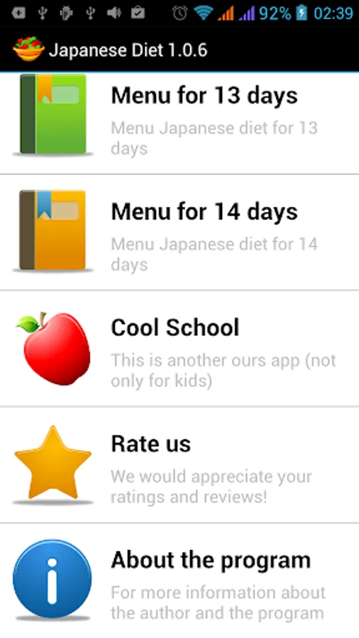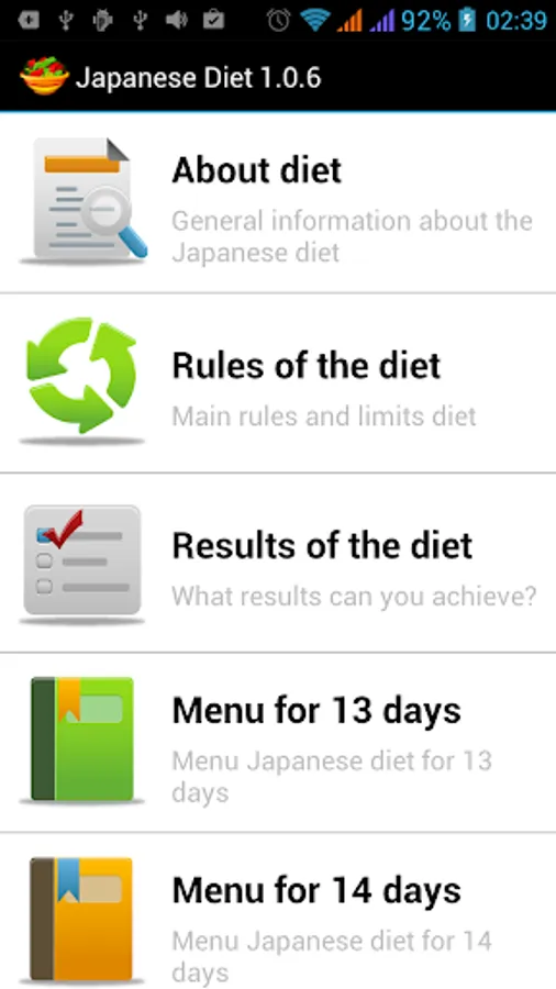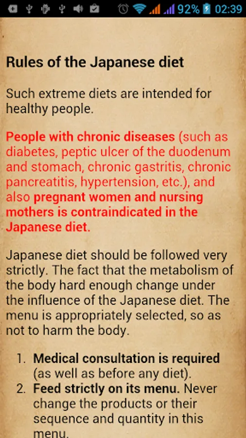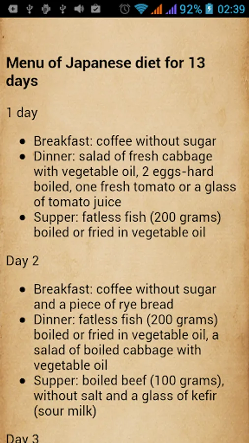 Japanese diet was invented by a Japanese сlinic. The virtue of it is that its menu includes foods that can speed up and optimize the body's metabolism. The diet is quite hard, so to achieve the desired result, you should strictly observe it, without departing from the following menus.