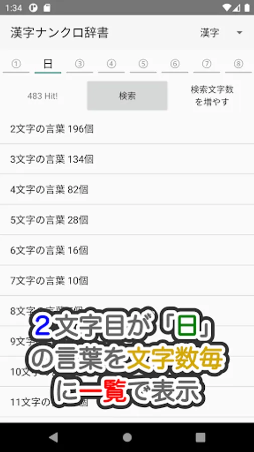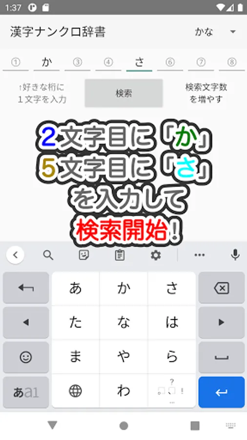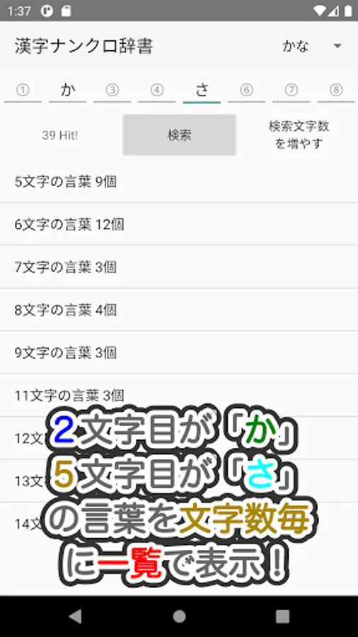 This is a dictionary app that can be used to answer Kanji Nankuro / Kanji crossword puzzles and create questions.