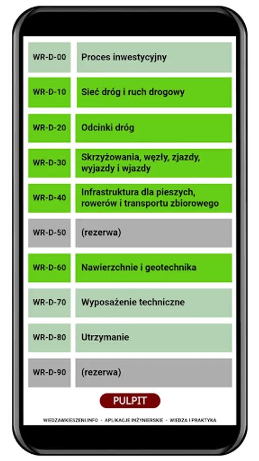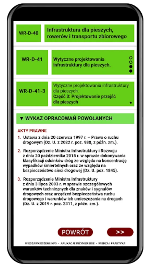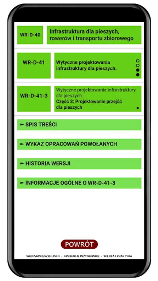 The "Recommended Guidelines Index" application is a tool that facilitates the use of "WR-D" (Recommended Guidelines for Roads).