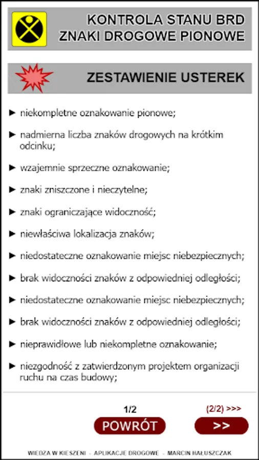 The application "Warning signs technical conditions" consists
