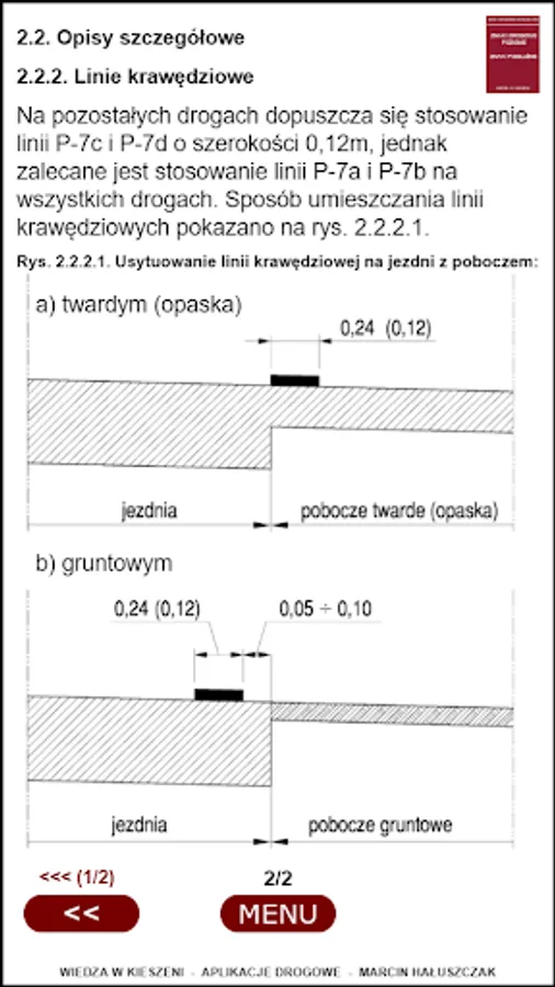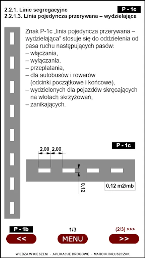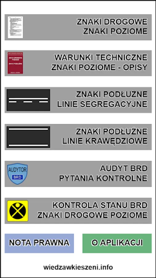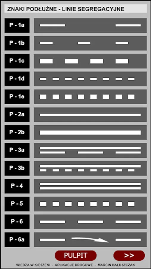 Application "Longitudinal signs technical conditions" abbreviated name "Longitudinal signs WT" is a mobile tool containing the necessary engineering information about HORIZONTAL ROAD SIGNS - LONGITUDINAL CHARACTERS.