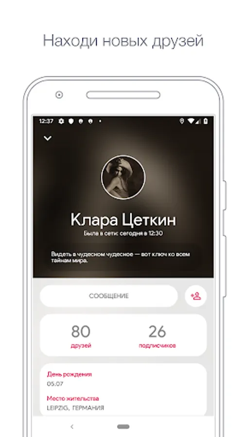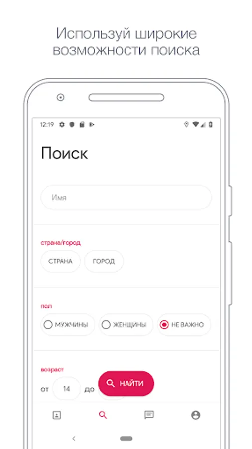 The application allows you to conveniently make new VK contacts by viewing user profiles according to the specified search criteria.