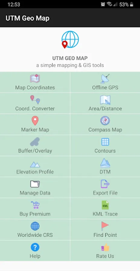 Complete, simple, easy to use & free application for Land Surveying, Topography, Bathymetry & GIS. Suitable for Geodesy Engineering, Civil Engineering, Geology and other disciplines related to maps, coordinates, location, address and spatial analysis. Can be used as a tool in determining position, coordinates, location & address, area & distance measurement, simple spatial analysis such as Overlay, Buffering, TIN / Delaunay Triangulation, Voronoi Diagram, Convex Hull, Smoothing, show WMS Map (Map Server) etc.