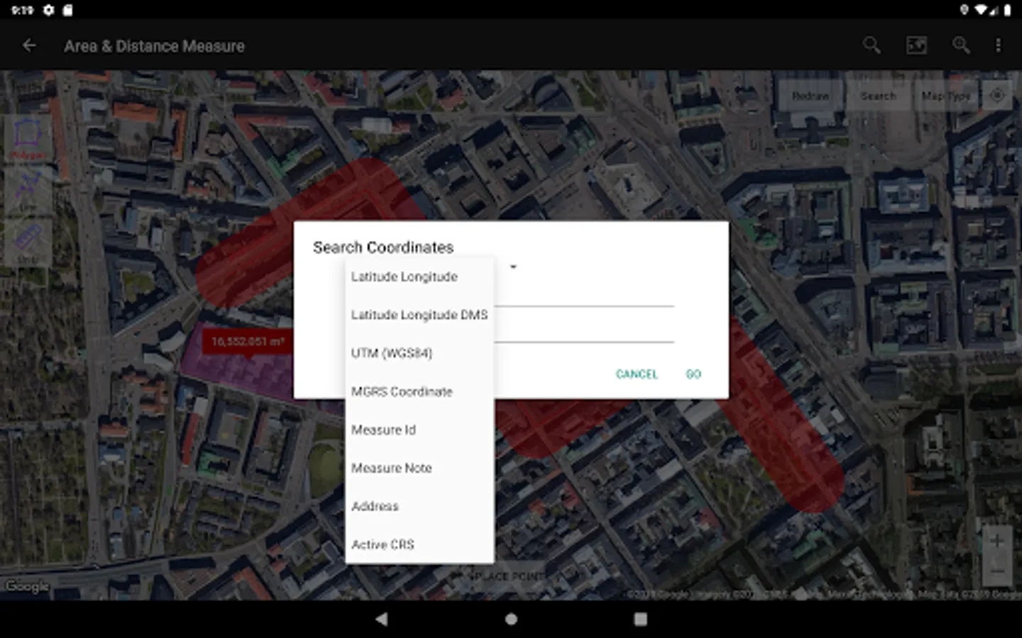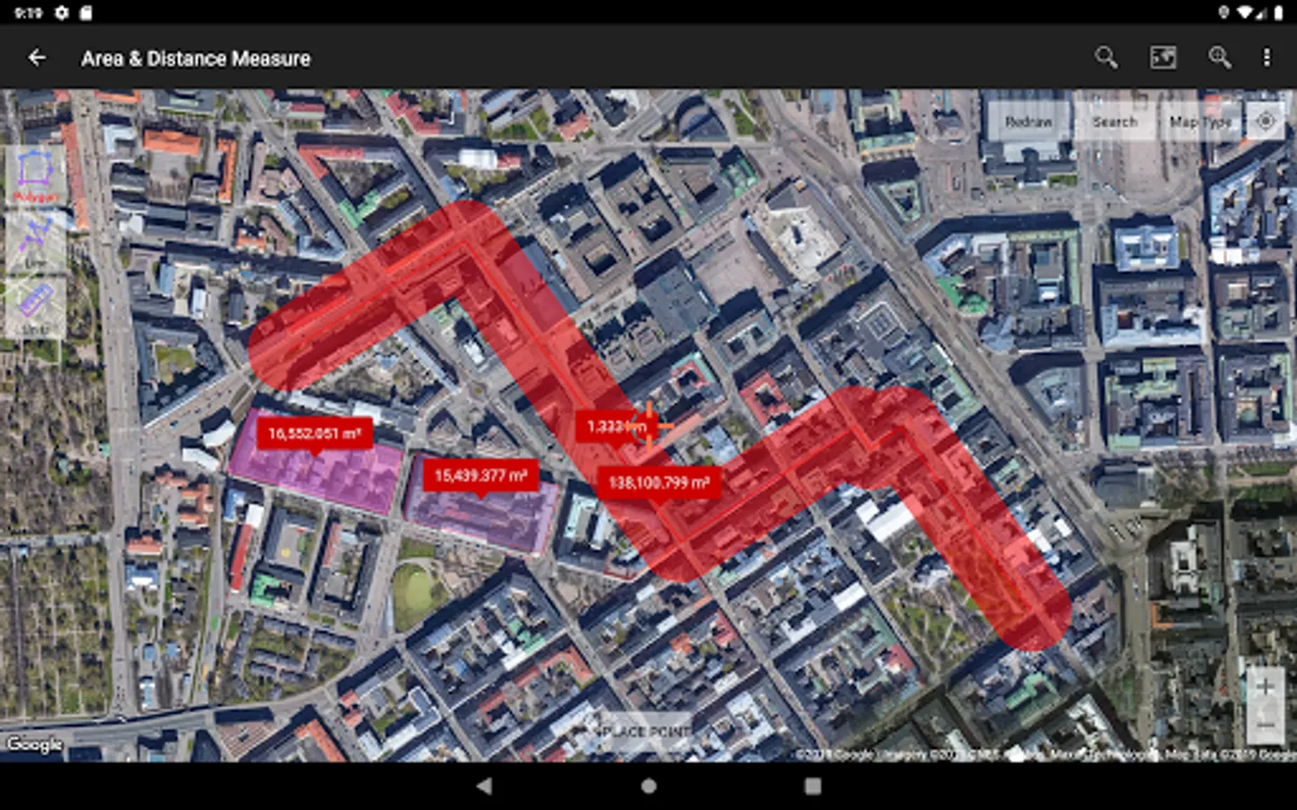 Area/Distance: Used to measure distance and area (support units: m, km, ft, miles, hectare, acre), register lines / polygons, make polygons automatically from measure points, create buffers from lines / polygons, overlay etc.. Line / polygon data can be stored in unlimited number inside your database, displayed on a map, added photos and labels or exported to CSV, KML or DXF format. Equipped with spatial editing algorithms such as Snap Nearest, Delete Object Inside / Outside Polygon, Smoothing (cubic bezier interpolation), Split Polygon By Line, and so on. Can read CSV & KML formats to import or display as reference files.