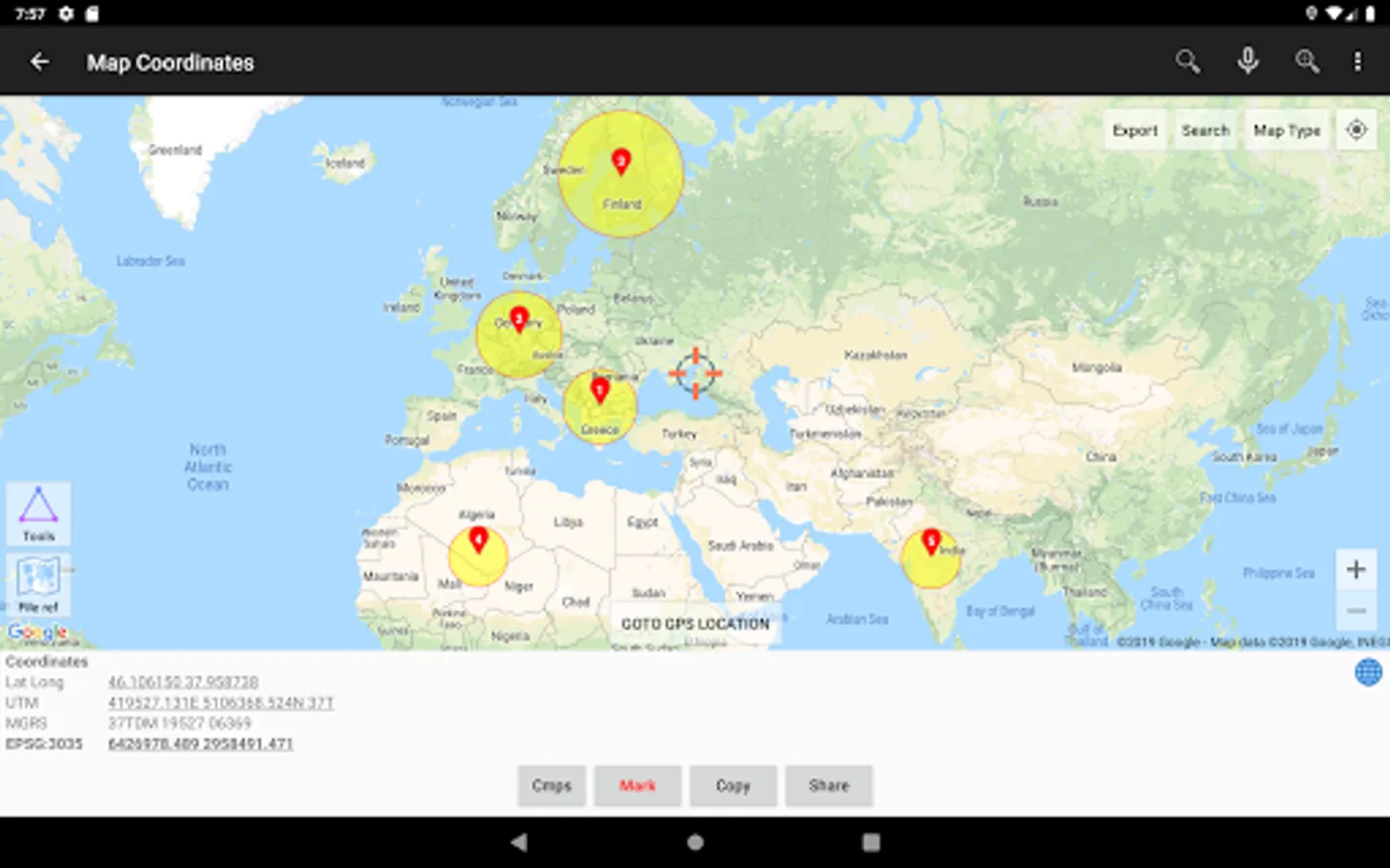 Coord. Converter: To convert coordinates manually from Latitude Longitude to UTM & MGRS and vice versa. It can also be used to convert addresses to coordinates (Geocoding, requires an internet connection). Some conversion is support for batch conversion.