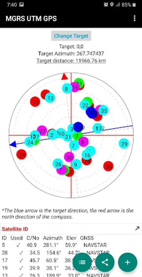 Additional information include GPS altitude (Ellipsoid), MSL altitude (EGM96), accuracy, speed, bearing and GPS Sky View complete with information about satellite name, satellite location (azimuth & elevation angle) etc..