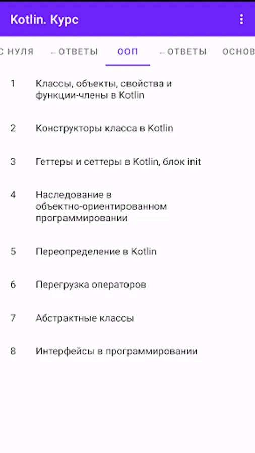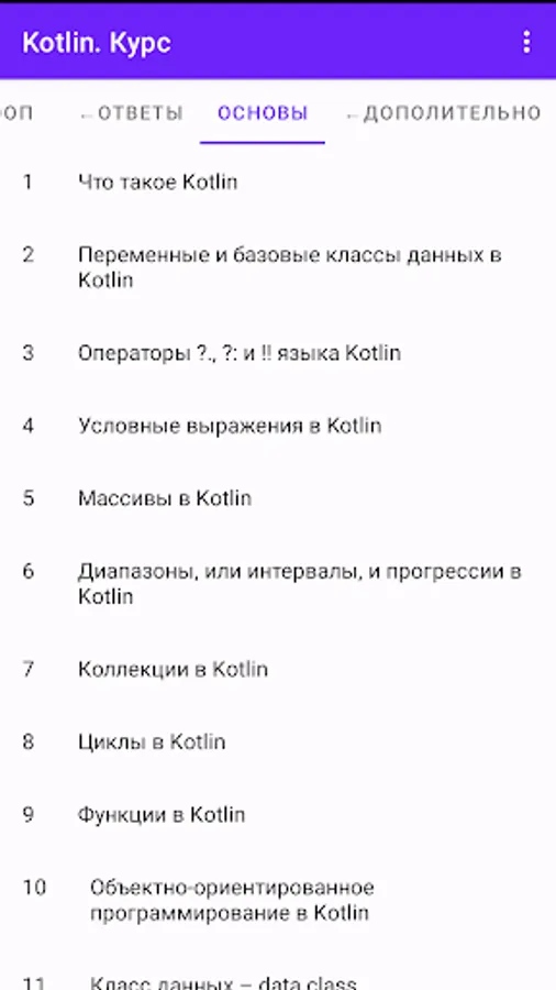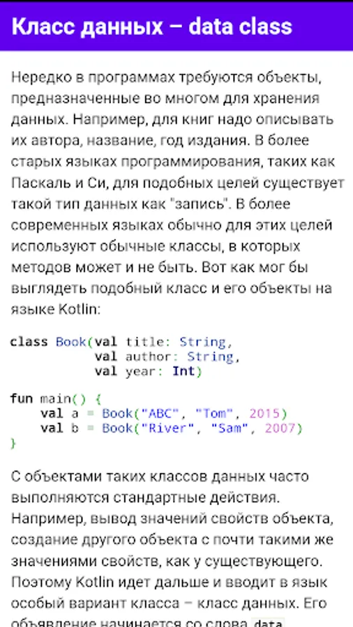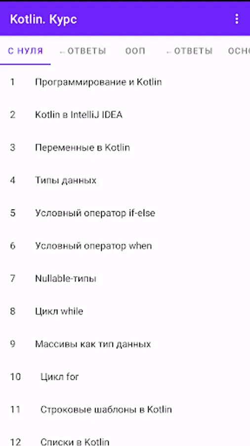 1. "Kotlin from scratch" is an introduction to programming. The basic foundations of imperative and structured programming are considered, as in the study of other languages.