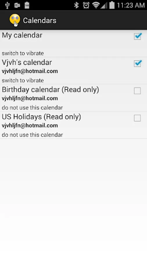** Note to Samsung users: Please read important information under Help->"Choosing for which meetings the phone will automatically change mode".