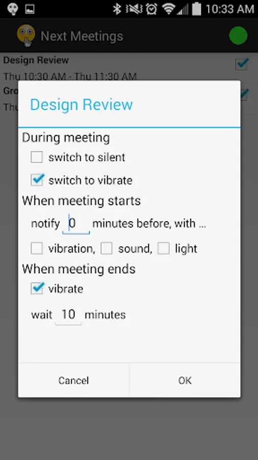 This app will automatically switch your phone to vibrate or silence certain notifications during meetings scheduled in your calendars.
