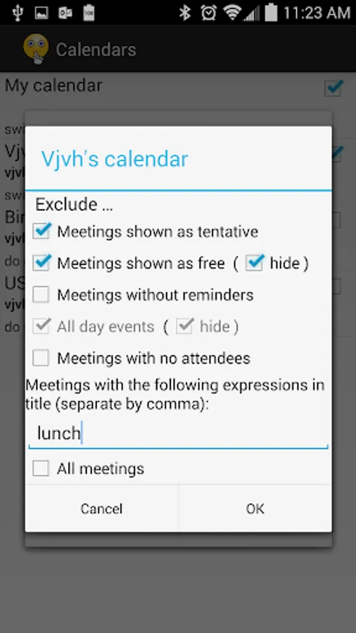 3. Filter meetings based on status**, title keywords, more than one attendee, etc...