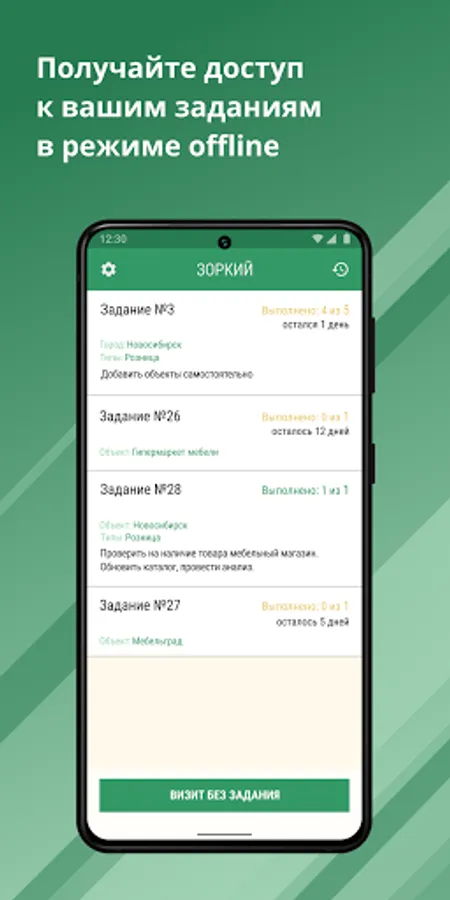 "Sharp" is convenient to monitor the job on the product display, cleaning and repair of equipment, price verification, visits to protected objects, courier delivery of goods.