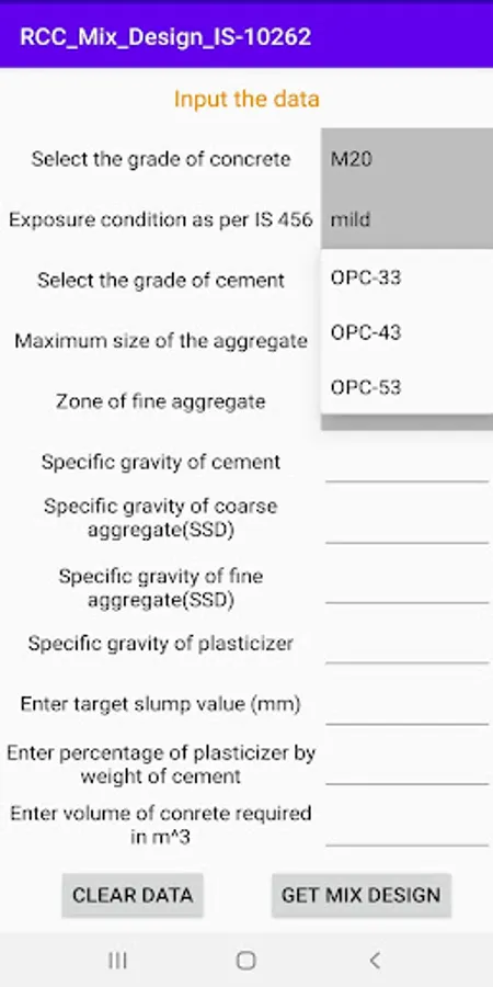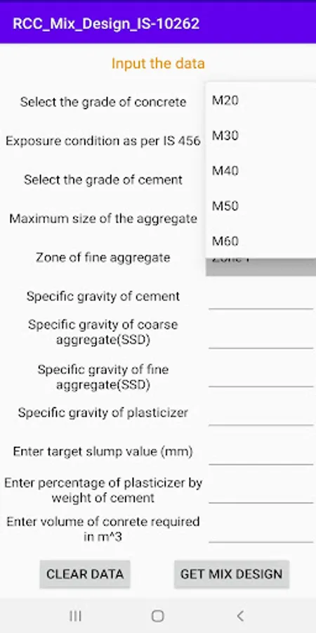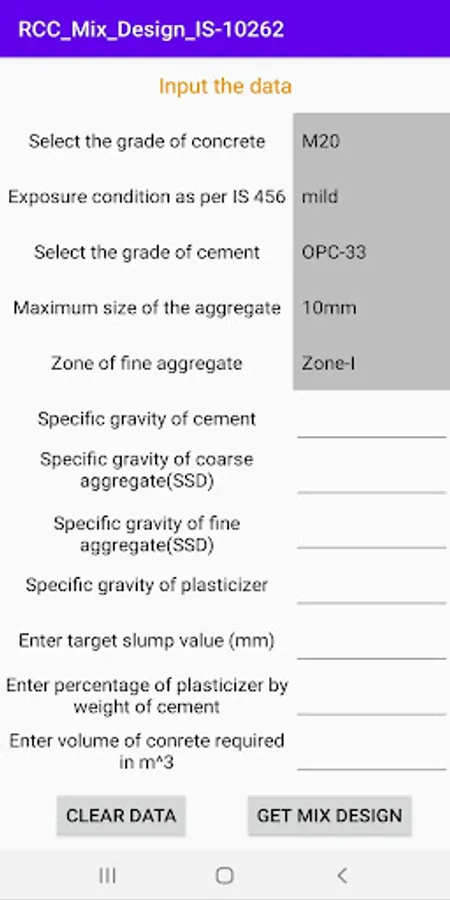 1) This app is designed to get the trial mix proportions for standard grade concrete (M20-M60) as per Indian standard guidelines IS:10262-2019. The calculations are similar to solved examples mentioned in the code.