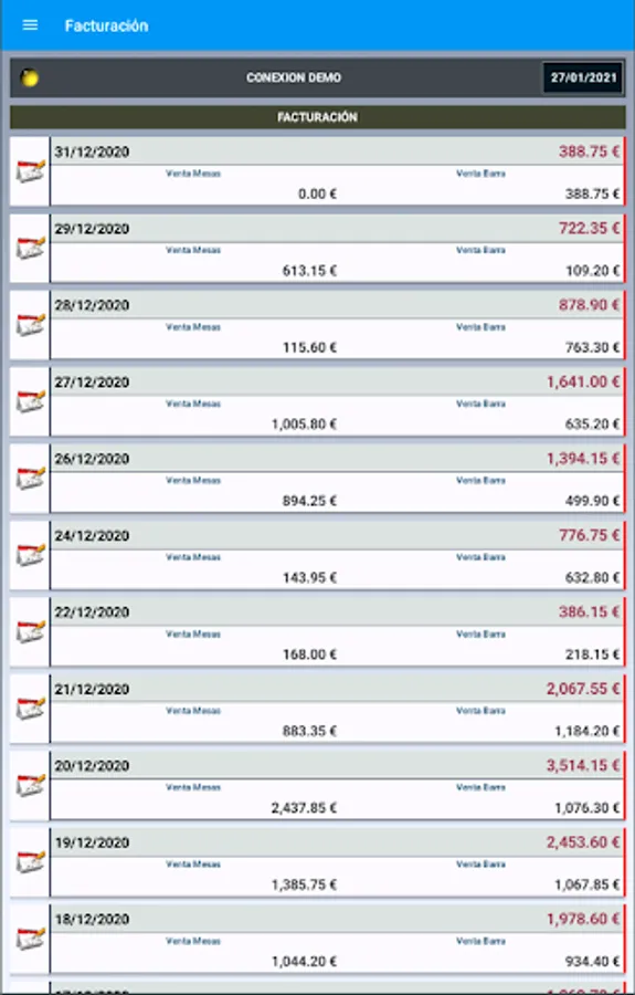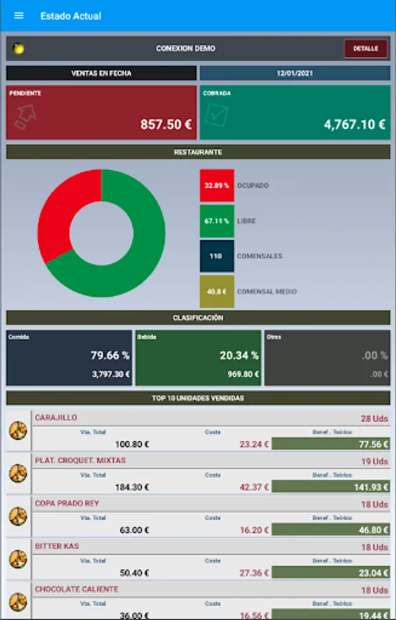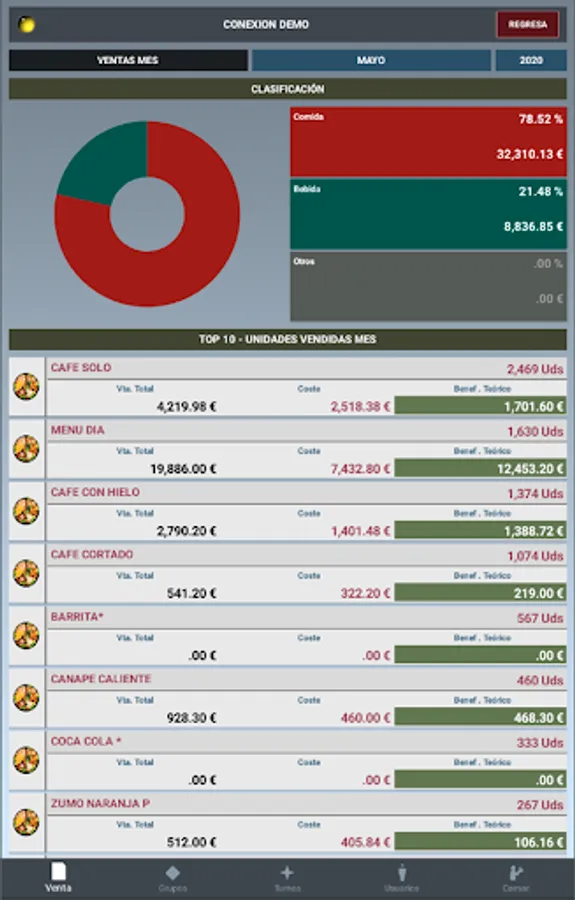 Aplicación que gestiona los datos de compras y ventas proporcionada por nuestro sistema de facturación para restaurantes InfoRest net 2, front office y back office.