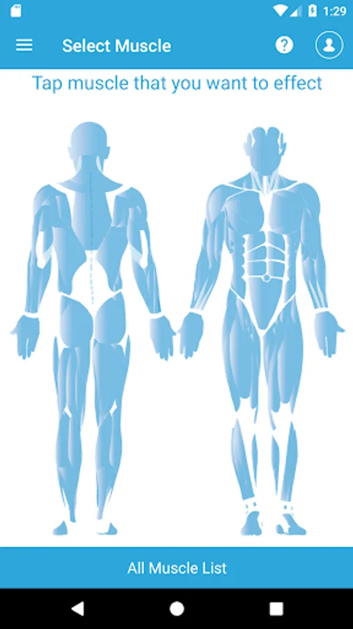 Visual Muscle Selector: Touch the muscles you want to develop for the relevant exercises.