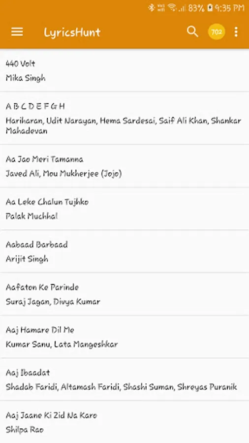 LyricsHunt provides lyrics for Bollywood songs and Albums. It's an purely offline app with no advertisements.