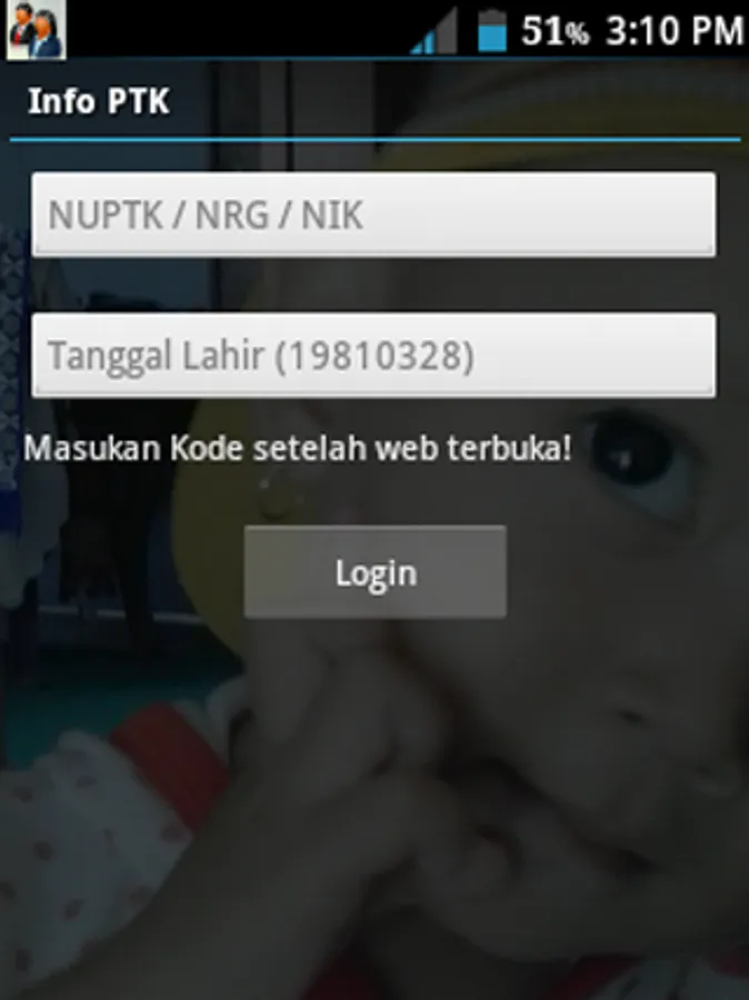 2. Type NUPTK / NRG / NIK on the form provided.