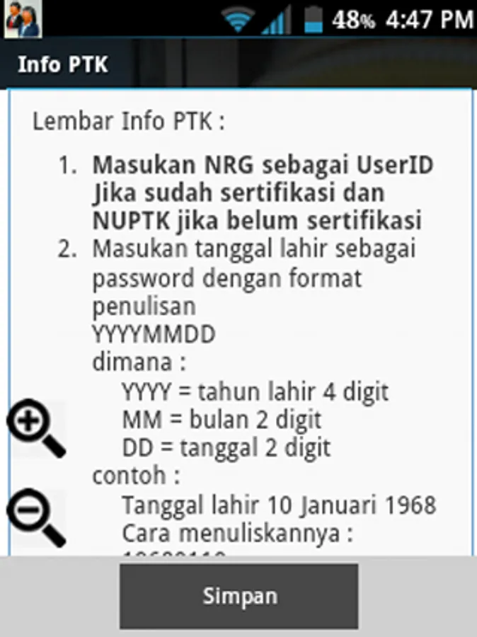 This time POPSI presents an android application that functions to check info PTK or LTD.
