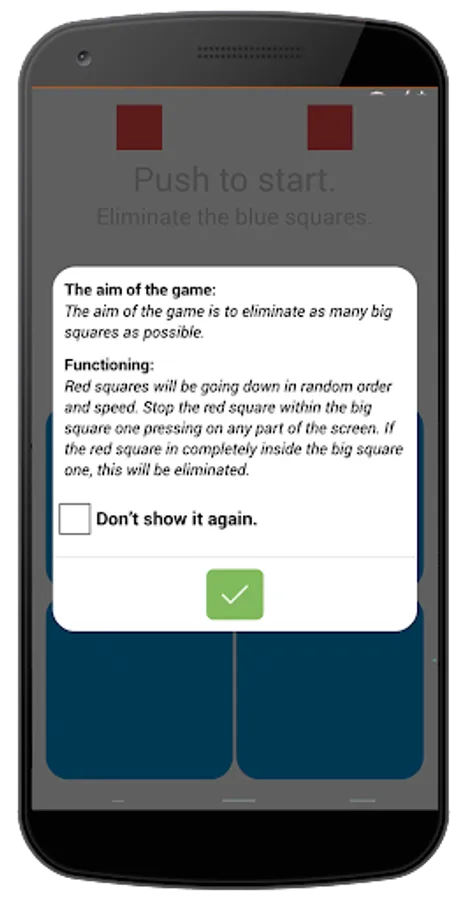 Break Square 2 is a free game, simple and addictive, ideal for having a good time. In BreakSquare 2 there are 2 types of squares (red and small, and big ones); the small red ones will fall one by one randomly and if you tap, they will stop. The game consists on stopping the small red squares within the other big squares to eliminate them.