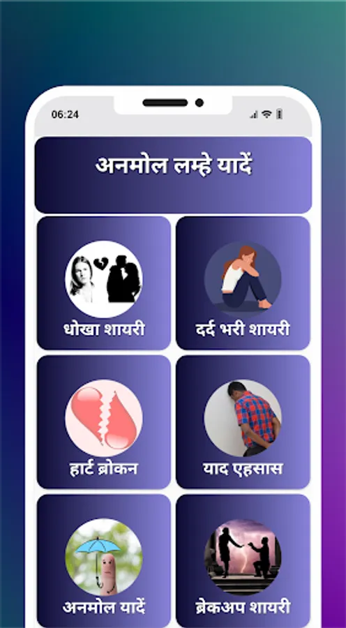 This app brings you the yaad Shayari for hindi language in 2023.