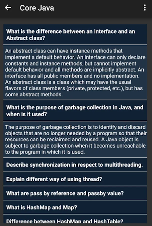 Java Interview Questions is an effort to bring together all popular java related interview questions asked across IT companies. It is a must have app for software engineers and students to grow their career.