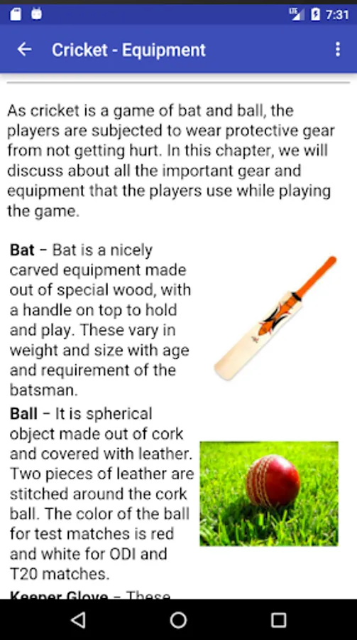 4. Equipment (e.g. Bat, Ball, Wicket, Helmet etc for Cricket)