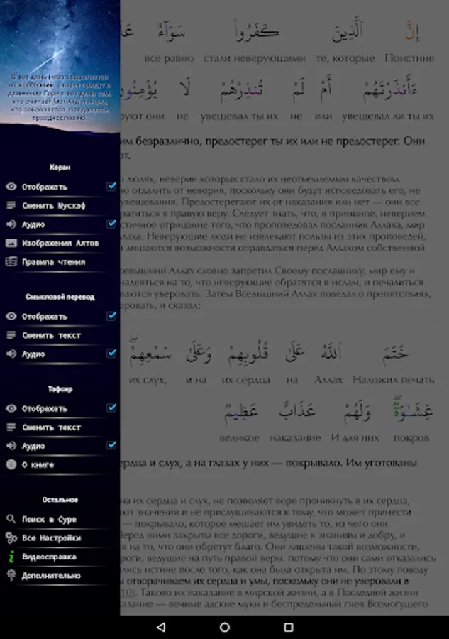 Quran for Android is a free Quran application for Android devices. Multifunctional application with a wide range of audio settings.