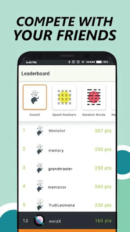 - Compete with your friends and see who is the better memory athlete!