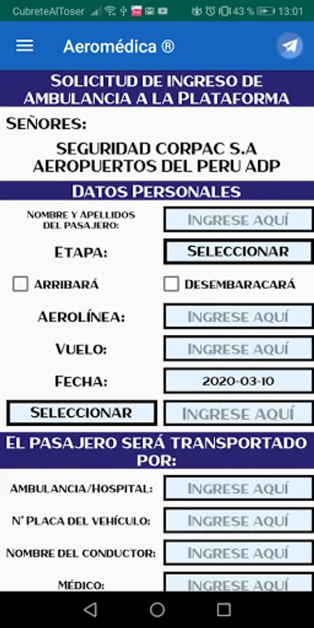This APP allows you to have a management of your fleet assets, this is a job of the Technological Association of Peru and the Aeronautical companies of Peru.