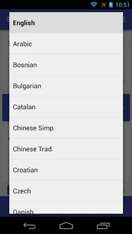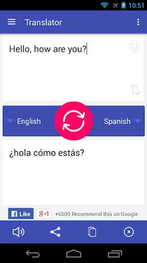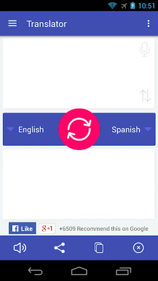 Now you can instantly translate to and from 100 different languages whenever you want, from your mobile device or tablet! Simply type the phrase you want to translate, select the source language and the language into which you want to do the translation and press the "Translate" button. In the box below the text, the translation will be displayed and ready to be copied to any other application, email, sms, whatsapp, facebook or whatever you want.