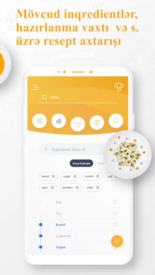★ Evinizdəki mövcud ərzaqlara əsasən resept axtarışı