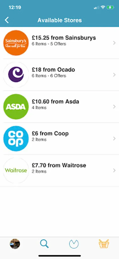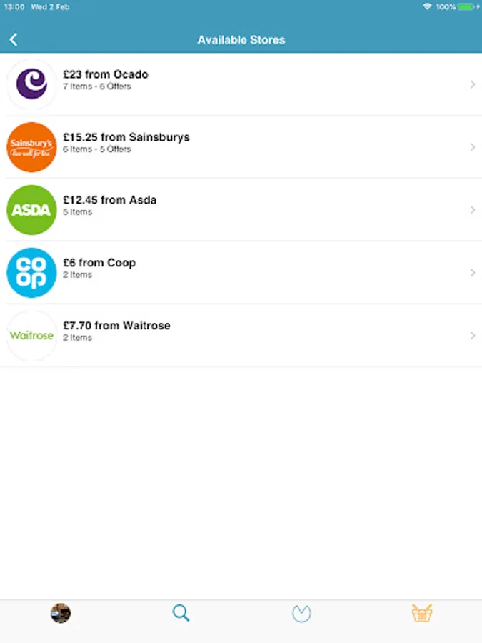 Live price comparisons for groceries and complete baskets across multiple supermarkets including: