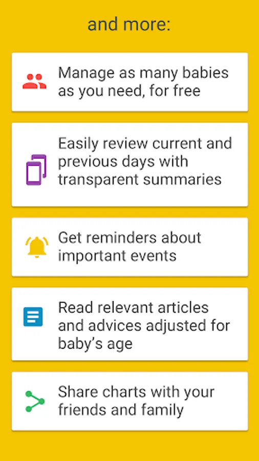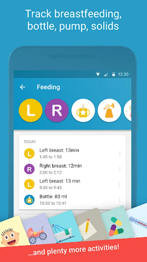 Simple and intuitive. Baby Manager will give you peace of mind by keeping track of your little one and give you timely reminders for the sleep-deprived parent that you are.