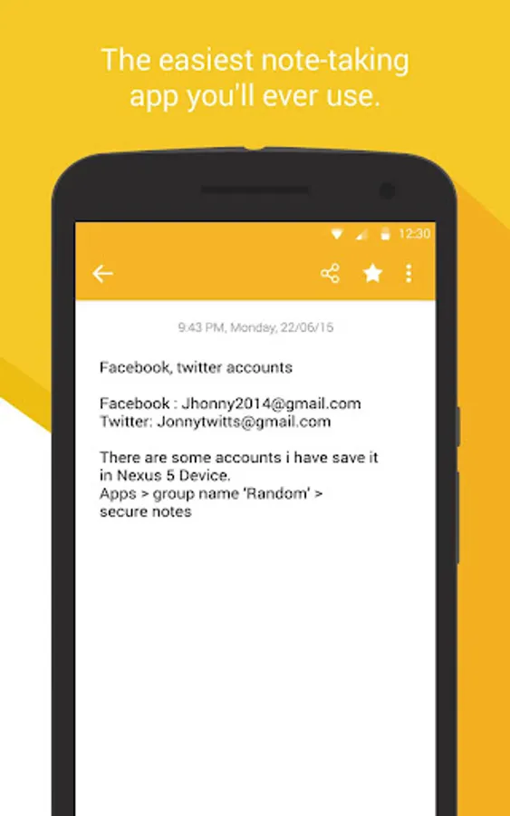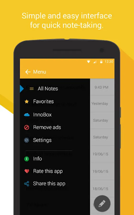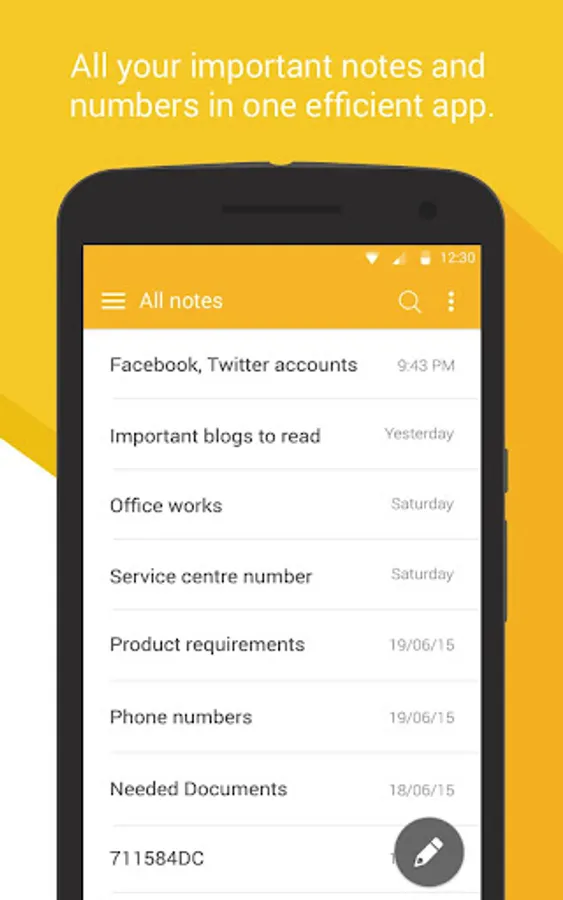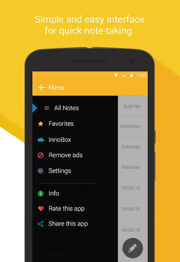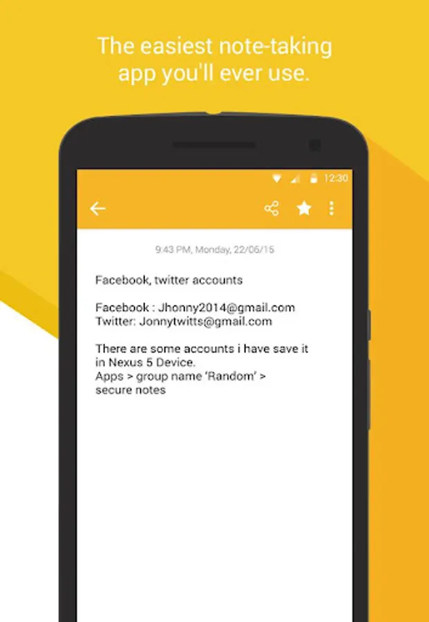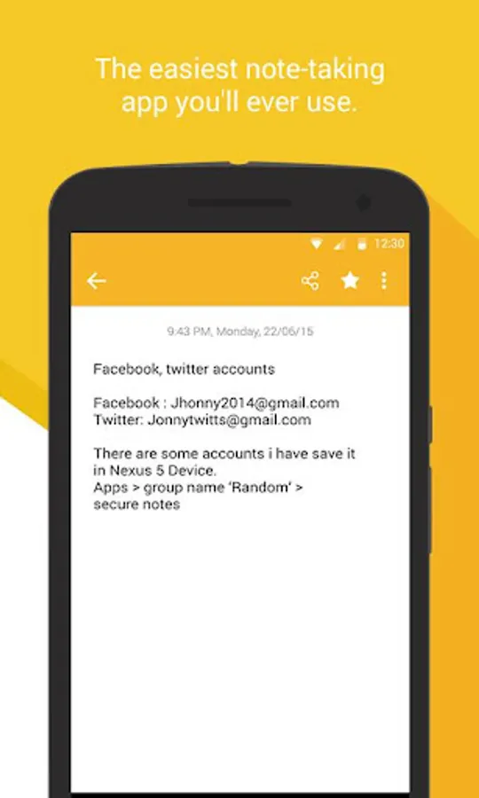 Easy Notes is quick and simple note pad, you can save memo, email, message, shopping list. Easy Notes provides a simple interface and taking a note very easier with good usability. Easy Notes stores all your data on the sd card instead of taking up valuable internal memory.