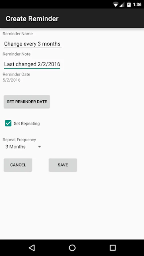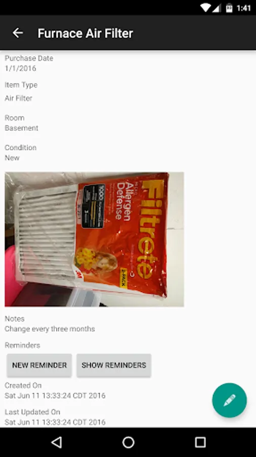 Home Owner helps you to record information about the items in your home. The reminder feature allows you to setup custom reminders to alert you. Never forget to change your furnace air filter again!
