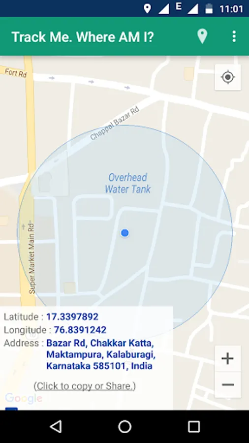 View your current location and its details on your Android phone using Track me, Where Am I? app. This is very useful when you are in a new location or traveling.
